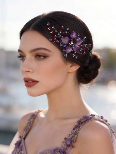 2件套手工珍珠、玛瑙和玻璃水钻发夹,优雅闪亮的波西米亚风新娘婚礼发饰,四季皆宜的多功能铜合金新娘发夹