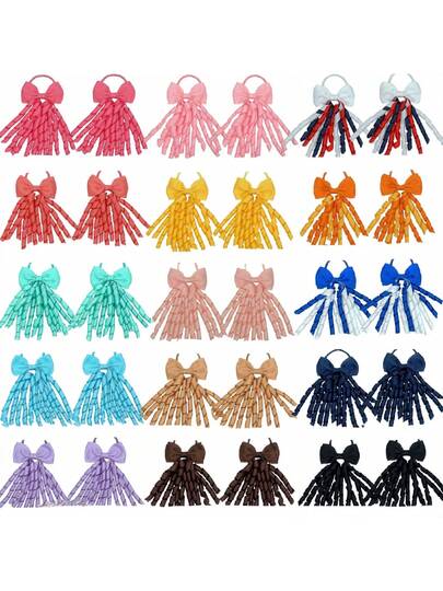 2个/套复古蝴蝶结发圈 - 卷曲流苏丝带发带,时尚情人节礼物,约会和通勤皆宜。 - 彩色 - 查看 12