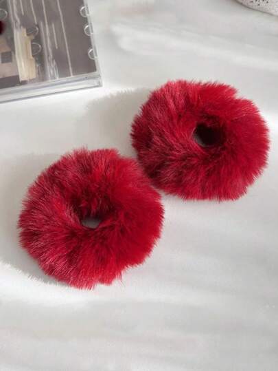 2 件/套简约白色高弹力毛球发带 - 酒紅色 - 查看 2