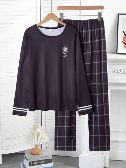 2件套青少年男童灰色虎纹长袖上衣和裤子休闲家居服套装 - 黑色 - 查看 2