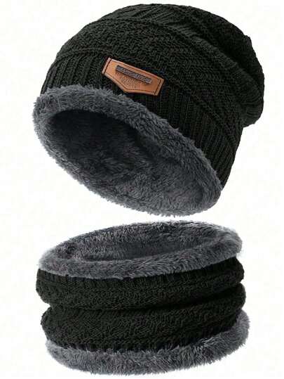 冬季针织帽围巾套装(2件套),加厚保暖绒里,男女通用休闲保暖帽 - A - 查看 1