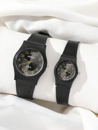 2 件简约黑色石英表,男女皆宜,适合日常佩戴,也可作为节日和生日礼物 - 黑色 - 查看 2