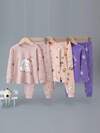 SHEIN Genkimix Kids 2件套女童卡通小狗蝴蝶结印花针织长袖上衣和长裤睡衣套装
