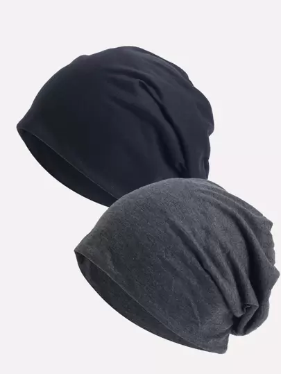 2入組實色鬆軟貝雷帽頭巾髮帽 - 彩色 - 查看 2