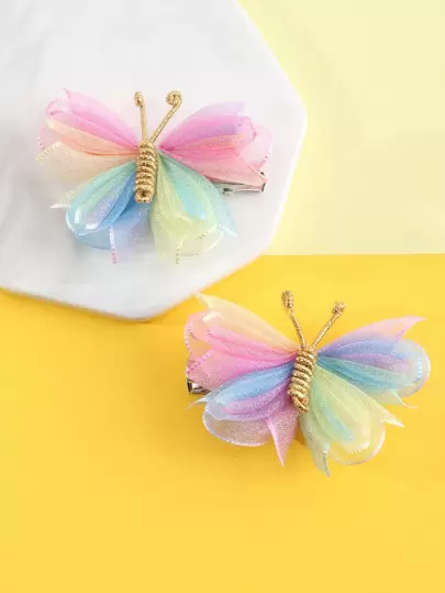 小女童2入組蝴蝶裝飾髮夾 - 彩色 - 查看 1