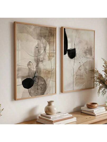 2 件无框,黑色米色抽象墙面艺术,中性简约艺术印刷品,工业海报,Japandi 线条艺术印刷品,现代墙面装饰,客厅、卧室、厨房、家庭办公室、咖啡厅、酒吧、走廊、家居和房间装饰的帆布艺术 - 黑色 - 查看 1