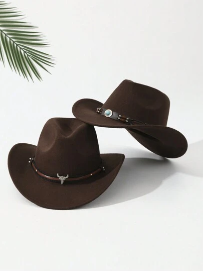 2 件男女通用刺绣公牛头腰带装饰波西米亚风牛仔帽/女牛仔帽,柔软毡制软呢帽,适合休闲、户外和派对,适合所有季节万圣节 - 多色 - 查看 1