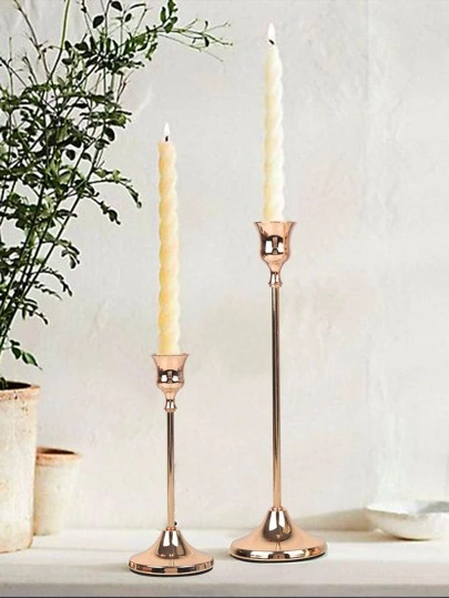 2pcs 垂直简约可爱金属铁艺季节性通用烛台摆件 金蜡烛台 适用于户外庭院装饰 办公室桌面装饰 香薰烛杯 居室氛围 婚礼 家庭聚会 派对 表白 餐桌摆件 家庭烛光晚餐用具 浪漫氛围摆件 全年通用 - 玫瑰金 - 查看 1