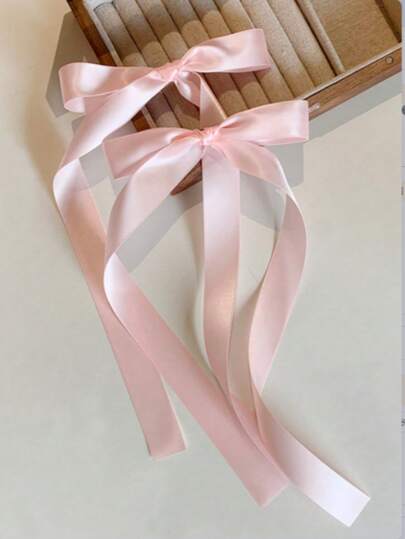 2 件女士发饰,简约时尚蝴蝶结发夹,优雅芭蕾风格丝带发夹,甜美可爱的日常发夹,超长,爪夹,发夹,发夹,鳄鱼发夹 - 粉色 - 查看 2