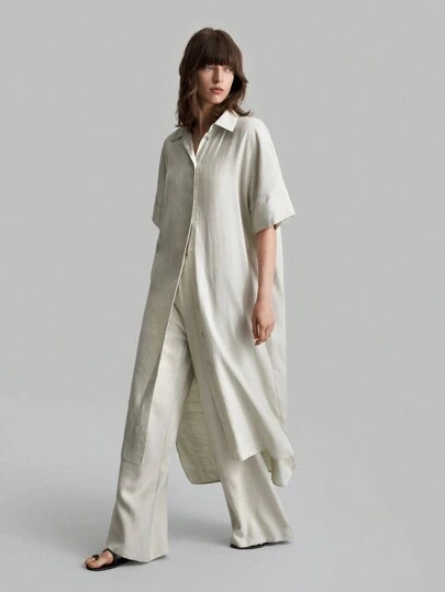 Ontre 2 件套女士开学季长款衬衫和裤子套装,秋季 - 綠色 - 查看 10