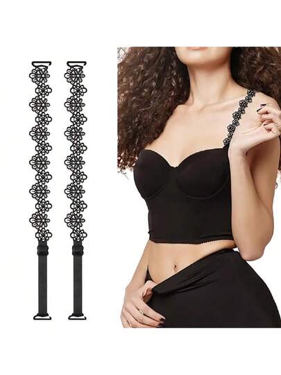 2 件女士优雅花卉蕾丝胸罩肩带 - 可调节、防滑替换肩带,非常适合夏季凉爽、海滩、旅行时搭配连衣裙和内衣配饰 - 彩色 - 查看 3