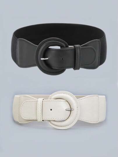 2条装女士字母扣休闲弹力腰带,适合日常生活、万圣节、夏季、学校、秋季等场合。 - 彩色 - 查看 2