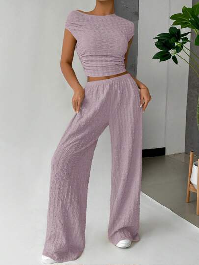 Muchica 2 件女式纯色短袖上衣和长裤套装 - 淺灰紫 - 查看 1