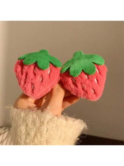2个装女士可爱粉色毛绒草莓发夹,适合侧刘海和户外拍照,粉色配饰,情人节毛绒发夹,发爪,发卡,学习用品,粉色发夹,冬季,发饰 - 玫紅色 - 查看 4