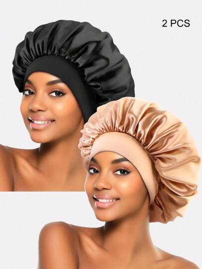 2 件装女士宽边弹力头带帽、化疗帽、护发帽适合日常使用 - 彩色 - 查看 1