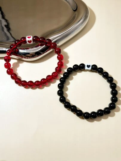 2入組/套愛心細節串珠手鏈 - 彩色 - 查看 2