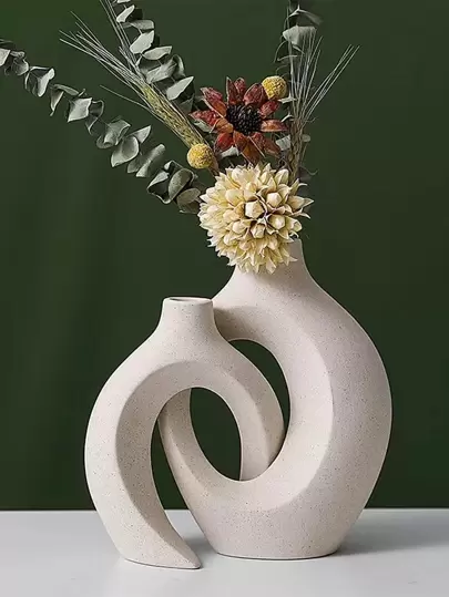 2 件套瓷花瓶,创意几何设计花瓶,家居装饰,花瓶,餐桌装饰 - 白色 - 查看 1