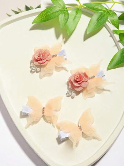 2 件/4 件蝴蝶花发夹,女童蝴蝶结发饰 - 珊瑚橙 - 查看 4