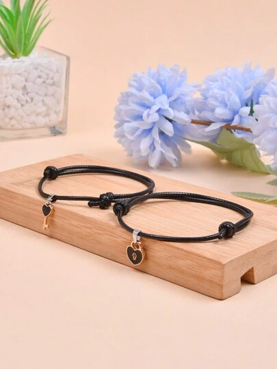 2入組可調節花式編織星星手鍊,禮物、友情禮物、學生手環、紀念禮物 - 黑色 - 查看 2