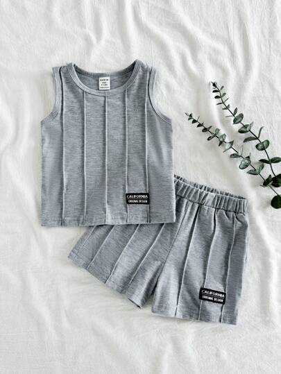 Vintaside Kids 2 件套男婴休闲百搭褶皱无袖上衣和短裤套装,适合夏季、户外使用 - 彩色 - 查看 1