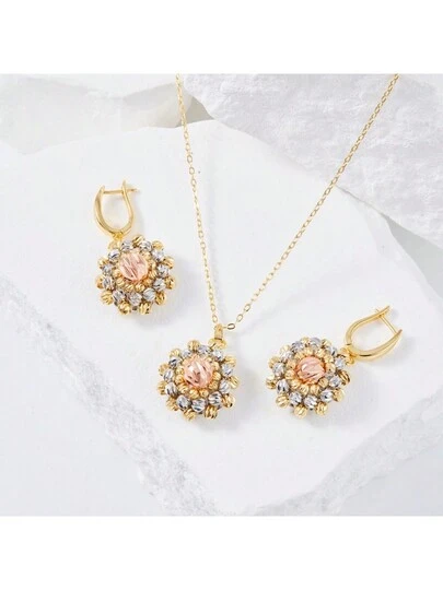 2入組/套三色珠串手工編織3d小向日葵塔形項鍊和耳環,適用於女性日常佩戴 - 太陽花 2件套 - 查看 1