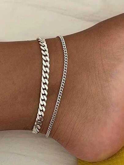 2条复古简约双层链条脚链,女士款 - 銀色簡約2件 - 查看 2