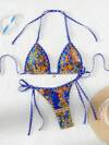 Swim Mod 滿版印花吊脖三角形側繫帶比基尼泳裝