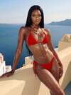 Swim Mod 夏季海滩女士热带植物印花吊带比基尼套装,性感比基尼套装带下装,随机印花