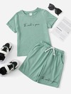 SHEIN 兒童男孩字母印花t恤和帶帽貨物短褲套裝