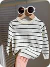 1 件年轻男孩休闲学院风舒适时尚简约实用百搭学院风条纹舒适厚实保暖圆领毛衣男孩毛衣儿童服装年轻男孩衣服返校男孩服装日常适合上学适合旅行适合运动适合秋冬季