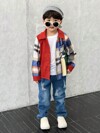 SHEIN 年輕男孩經典格子翻領長袖襯衫和寬鬆牛仔褲套裝,適合秋冬運動和休閒