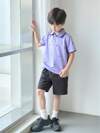 SHEIN 年轻男孩制服学院领短袖 Polo 衫和短裤套装男童套装夏季男童夏季套装男童短裤套装