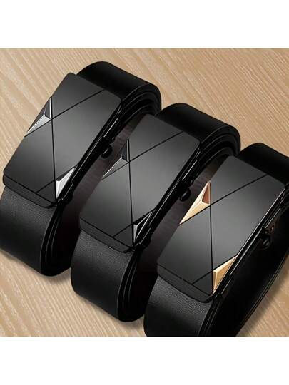 男士三件套皮带,新款男士无齿内扣自动皮带,商务休闲不漏气,金属扣提升气场和自信,适合各种节日、派对和休闲场合,夏季、学校、秋冬季配饰,适合青少年、青年、男士,休闲、户外、运动、度假、毕业礼物、生日礼物、日常穿着 - 彩色 - 查看 1