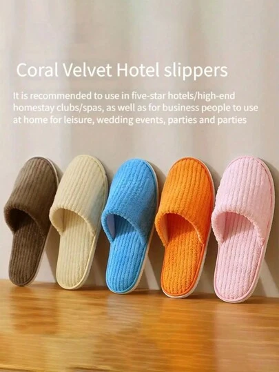 3 双条纹珊瑚绒拖鞋 - 男女通用成人保暖拖鞋,适合居家、水疗、酒店、旅行、婚礼、沙龙 - 柔软、防滑、无香味 - 彩色 - 查看 10