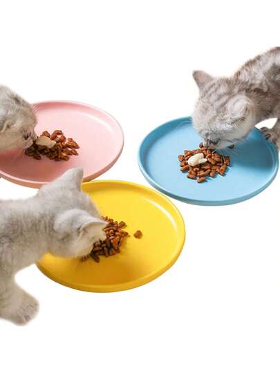 3入組15cm寬淺瓷製貓飼料碗,貓咪無鬍紋減緩疲勞粉紅藍黃色貓罐頭寵物食品水碗,適合貓狗寵物使用