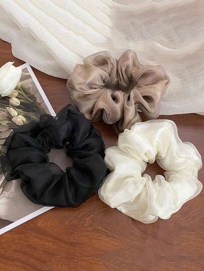 3 件双层欧根纱发圈,纯色,适合日常使用,发圈,休闲,洗脸,发饰 - 彩色 - 查看 3