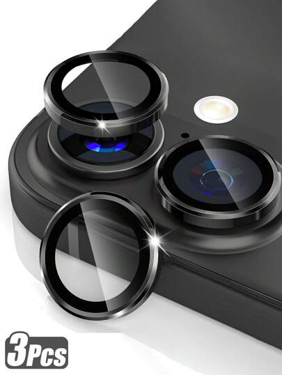 3片装相机镜头保护膜,兼容 17/16 Pro Max/16 Pro/16 Plus/15 Pro Max/15 Pro/14 Pro Max/14 Pro/13 Pro Max/13 Pro/12 Pro Max/12 Pro,AR+AF钢化玻璃,9H防刮金属单镜头盖,高清透明相机配件,兼容手机壳 - 黑色 - 黑色 - 查看 3