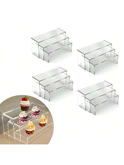 三层亚克力蛋糕架套装 | 可叠放甜点展示架,适合派对 | 多层托盘,可盛放纸杯蛋糕、马卡龙、小吃等 - 彩色 - 查看 11