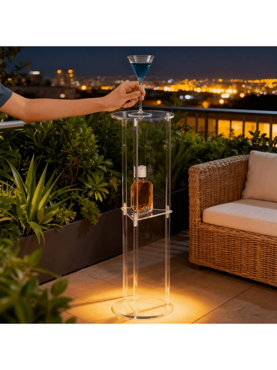 三层圆形亚克力饮料桌,适合小空间,可用作客厅马提尼桌或小型饮料边桌。 - 彩色 - 查看 11