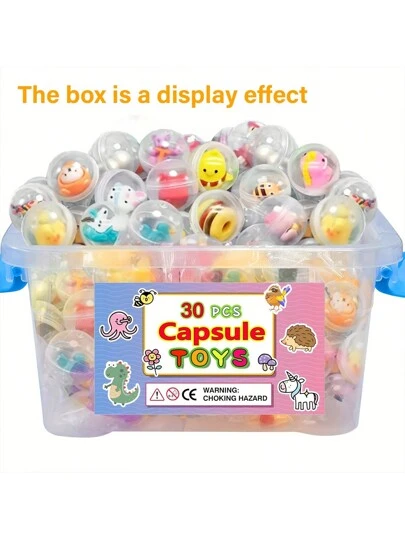 透明容器中装有 30/60 个混合迷你娃娃 - 非常适合口香糖机、庆祝赠品和神秘奖励、派对神秘礼物、玩具和节日礼物。 - 彩色 - 查看 8
