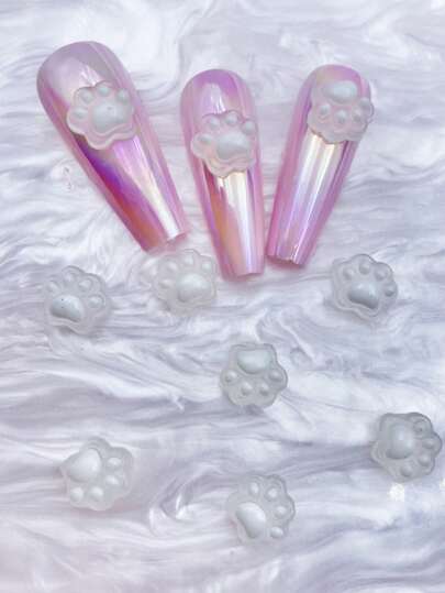 30 款卡通可爱猫爪印花扁平甜美半透明 DIY 无味抗过敏美甲手工配饰,适合女士和女孩情人节圣诞礼物, - 白色 - 查看 1