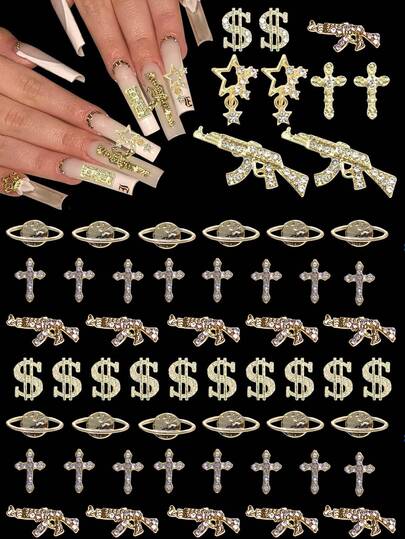 30个金色美甲饰品 3D合金十字架美甲饰品 水晶蝴蝶饰品 金属蝴蝶结Y2K美甲水钻 女士美甲及DIY工艺品