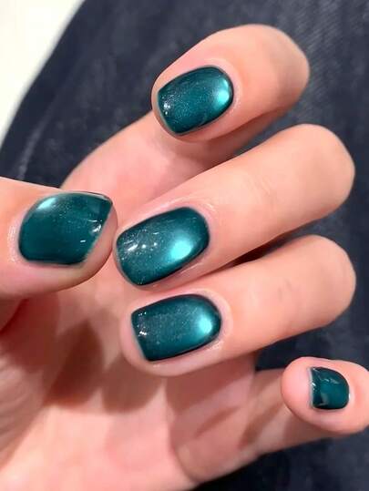 30 件猫眼按压短指甲 Y2k 指甲蓝绿色方形渐变闪光简单图案可重复使用按压亚克力指甲假指甲用品,免费赠送 24 片果冻片和迷你锉刀 - 墨綠色 - 查看 2