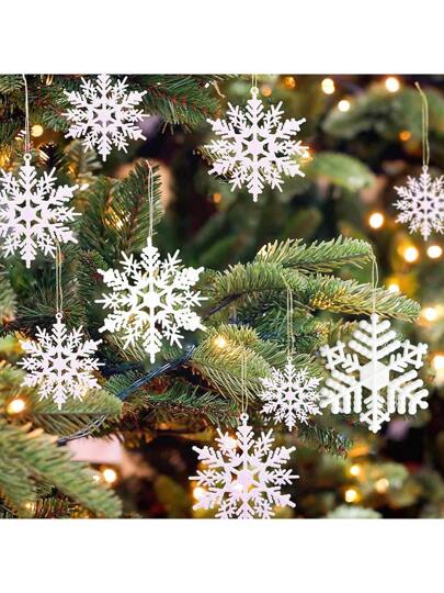 30 件圣诞白色雪花饰品塑料闪光雪花饰品适用于冬季圣诞树装饰尺寸各异的工艺雪花,圣诞节 - 白色 - 查看 4