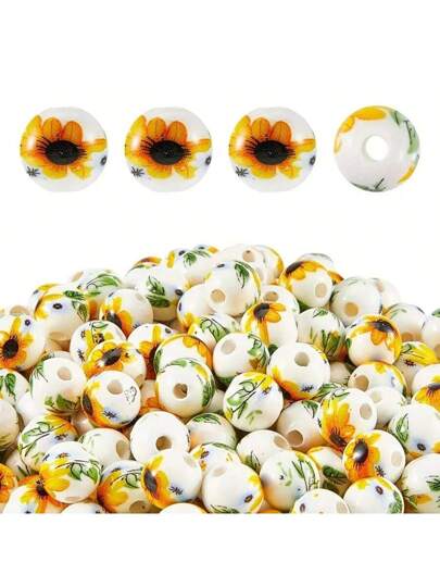 30 件新品向日葵陶瓷貼花珠適合 Diy 手工手鍊項鍊珠寶製作