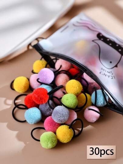 30 件女士彩色蓬松绒球发带高弹力黑色马尾辫夹发饰、马尾辫夹、发圈、发绳、橡皮筋、头饰 - 彩色 - 查看 1