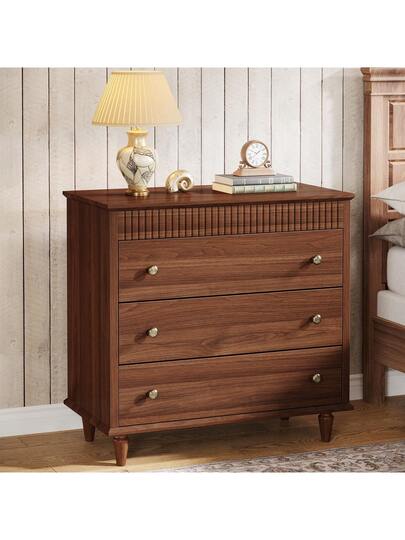 31.5" Oversized Nightstand With 3 Drawers, Farmhouse Bedside Table With Mental Handles For Bedroom And Home, Brown