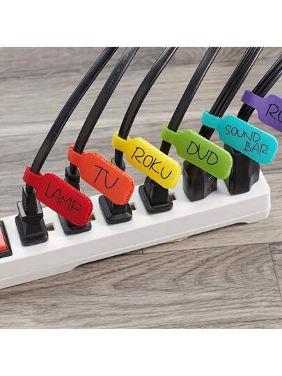 32 个电缆标签,配有可重复使用的可写钩环带、多色电缆管理标签、用于组织和识别的电线标记、无需电池 - 彩色 - 查看 6