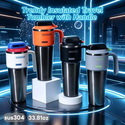 33.81盎司大容量吸管水瓶,简约设计,304不锈钢材质,可直接饮用,便携式设计,适合户外露营、徒步旅行、驾车和公路旅行。