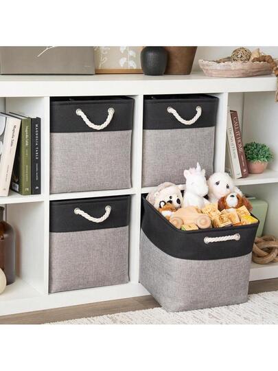 33x33 Cube Storage Box Set Of 4, Fabric Cube Basket For Storage Shelves, Collapsible Storage Cubes For Organiser Cube Boxes - 灰色底色 - 查看 4